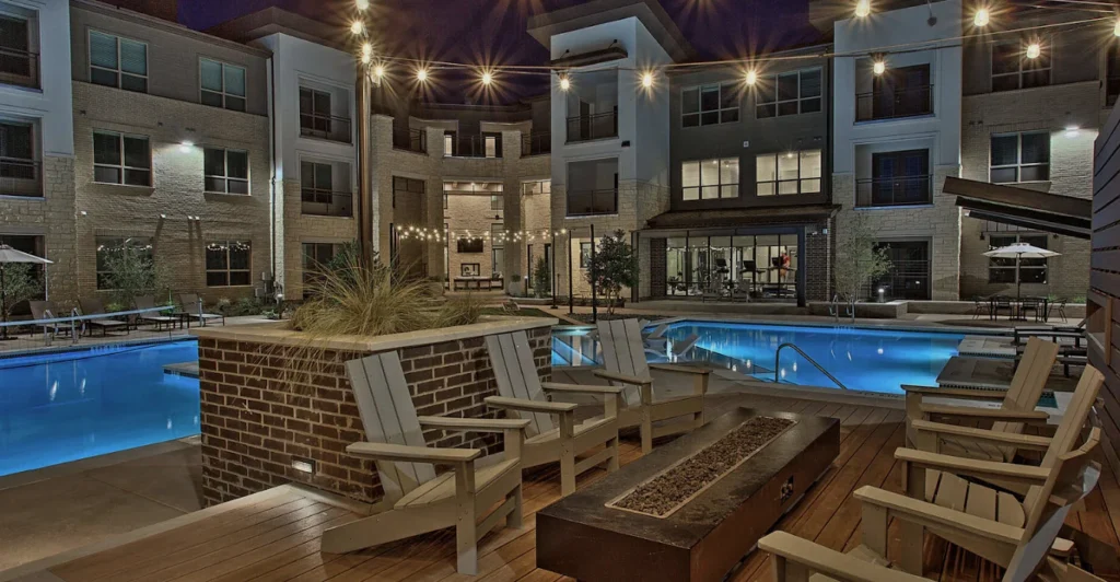 Newer apartment complex in south Abilene. Features resort-style pool, 24-hour fitness center, clubhouse with game room, dog park, modern finishes.